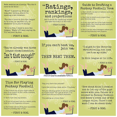 Weeeeeeeeeeeeeeeeeeeeeeeeee!!!!! Today's the day. First & Goal is now available in ebook on Amazon, Barnes & Noble, and Kobo. (Fans of print, stay tuned. It will be available in paperback later this month.) This book was a lot of fun to write. If you've followed my Fantasy Football Prince Charming posts in the past, then you already know that this is a topic near and dear to my heart.