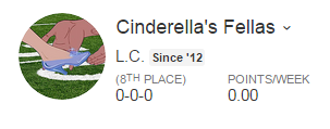 Cinderella's Fellas parlayed a solid draft slot (fifth overall) into a respectable performance. With a mark of 7-7-0 (1,744 points), they're projected to finish fifth in Ukeptem5 League. They used a conservative plan early to fill out their lineup, selecting QB Andrew Luck (5th overall), RBs Carlos Hyde (44th) and Andre Ellington (53rd), and WRs Brandin Cooks (20th) and Davante Adams (29th). They put together one of the most prolific QB duos in the league, as they added Luck and Joe Flacco.Stay tuned for updates on how my boys do this season. New fantasy posts will be up on Tuesdays.