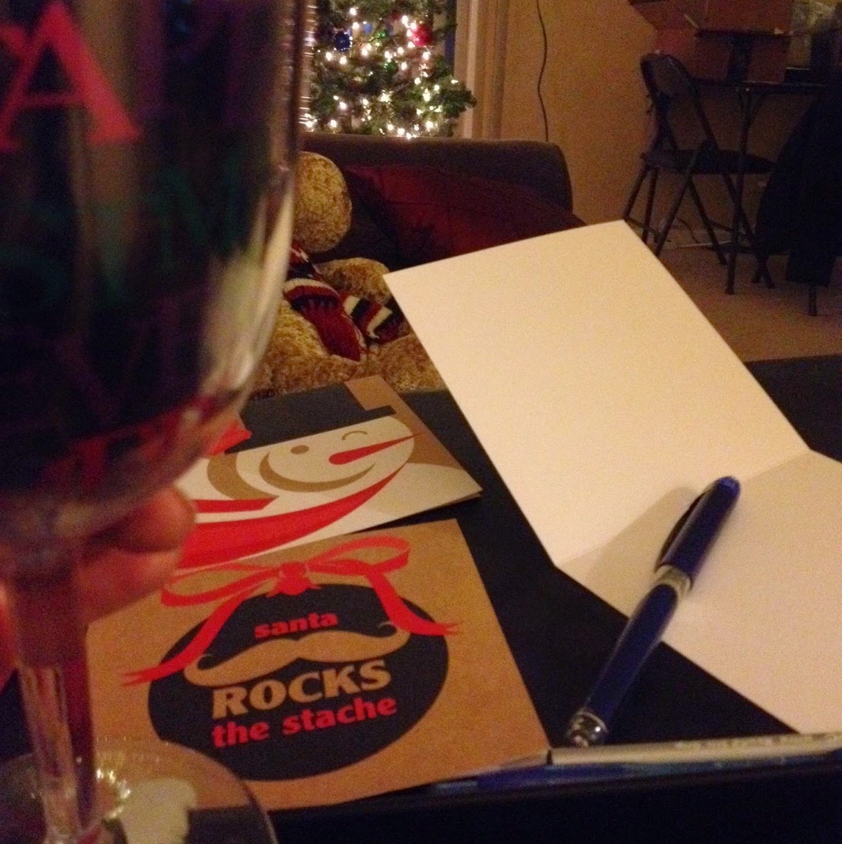 Day 5: Break out the Christmas cards (and Christmas wine sippy cup). #grownupadvent