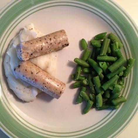 Tuesday night was bangers and mash. (Those are vegetarian sausages, by the way, just so you know I didn't suddenly go off the pescetarian wagon.)