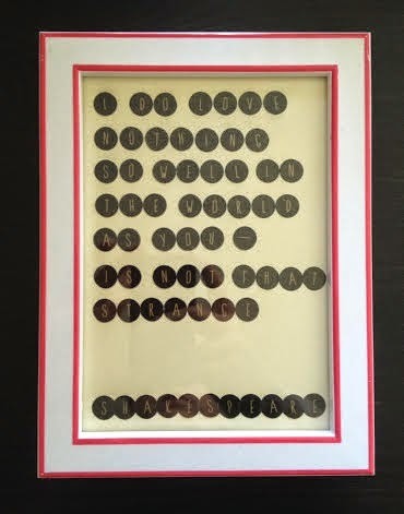 After cutting a rectangle the size of one of the empty picture frames I've been hanging on my wall since moving in last November, I checked to make sure I had enough letters to spell out the quote...