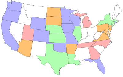 Blue: States you've spent a lot of time in or seen a fair amount of