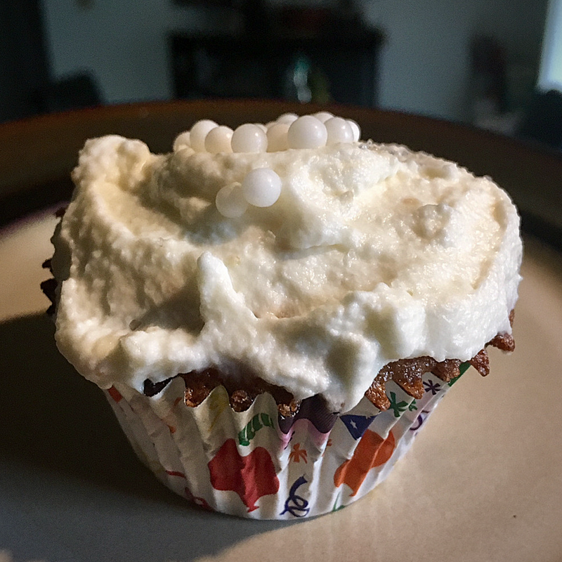 Once the cupcakes are baked golden and so a toothpick comes out clean, remove from the oven. Allow to cool outside of the muffin tins before frosting. Decorate with spatula or piping bag and decorate with sprinkles if desired.
