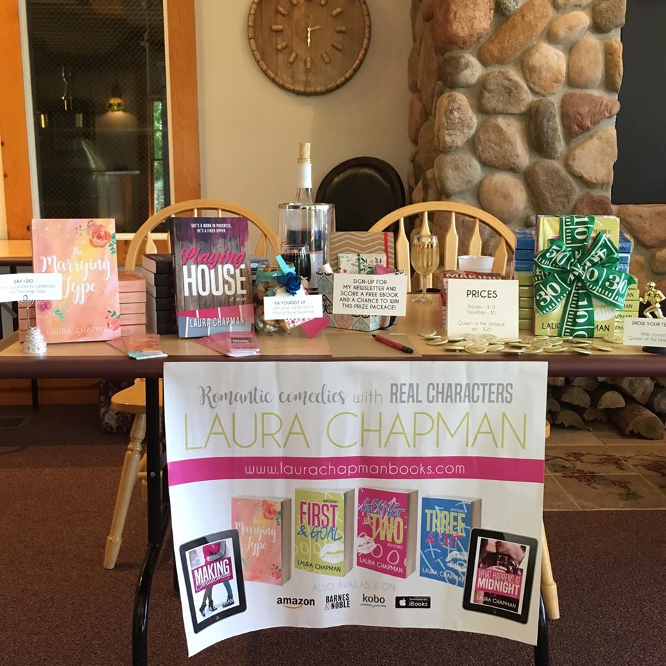 At each signing, I learn a little something I can carry forward to the next. Probably my biggest takeaway is to have fun with presentation. Back in November, I was lucky to have a scarf in my bag that perked up the table. In April, I introduced little figurines for signs and thematic ribbons to wrap books up in for taking books home.