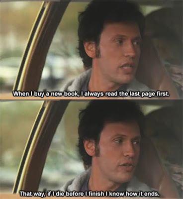 I really do hope I'm not destroying any other authors' lives out their by admitting that unless I'm listening to an audiobook, chances are better than not that I've at least read the final ten pages of their books before I've finished the first chapter. And I wish I knew why I did it. Because even with the explanations I've given, I can only think of a few cases where reading the ending put me off of picking up the whole book in general.