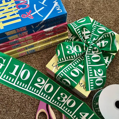 I'm not saying it means more sales, but it does perk up the table. And, hey, how cute do these Queen of the League books look with this football field ribbon?