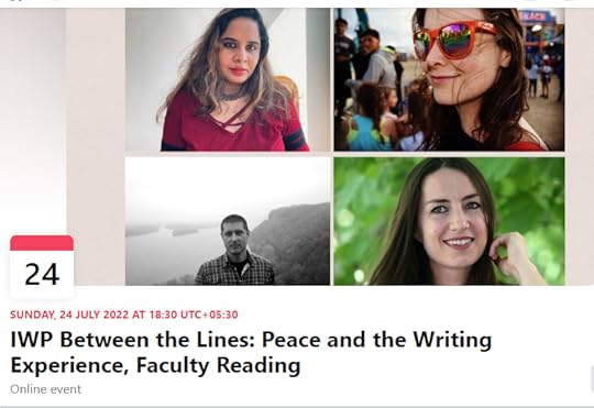 So glad and honored to join in with the teaching faculty for ‘Between The Lines 2022: Peace and the Writing Experience’ helmed by Alisa Weinstein. I cannot thank Christopher Merrill and Peter Gerlach enough for this opportunity to give back to the international community and young writers the dependable joy of words and their shaping for peace and semblance.