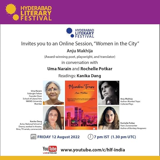 Mark your calendar! On Friday, August 12 at 7 pm IST, we’ll be discussing Anju Makhija’s fascinating book Mumbai Traps: Collected Plays in ‘Women & the City’ – a discussion around the plays in the book at the Hyderabad Literary Festival 2022 online.