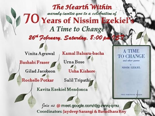 Welcoming you to the 70th anniversary of Nissim Ezekiel’s historical collection of poems A Time to Change. 8 pm IST on Saturday 26 February.