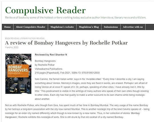 In which the discerning literary pundit (Ra Sh) Ravi Shanker N reviews Bombay Hangovers, featured in The Compulsive Reader.