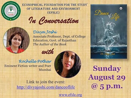 You are invited to the launch of Divya Joshi’s book of poetry Dance of Life. I will be in conversation with her, embedded into the whole programme – schedule, attached. Powered by the Ecosophical Foundation for the Study of Literature and Environment (EFSLE).