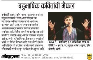 See you tomorrow then – 19th, Sir J.J. Institute of Applied Arts. See what the papers say. Loksatta and Lokmat coverage for Crossover Poems, created/curated by Sanket Mhatre, at Dean’s Bungalow, Sir J.J. Institute of Applied Arts, 4 pm onward.