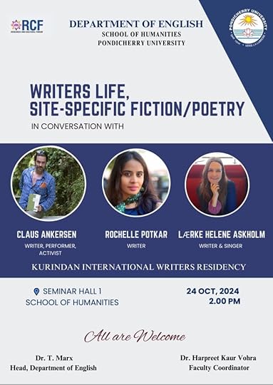 Looking forward to our interactions at the Department of English, Pondicherry University. 24 October 2024 as part of Kurindan International Writer’s Residency with Claus Ankersen and Laerke Helene Askholm. Friends in Puducherry, do meet us!