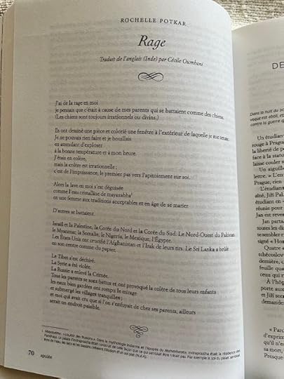 Glad to see my poem ‘Rage’ part of my first poetry collection ‘Four Degrees of Separation’ appear in French in Apulée magazine, translated by the evocative writer Cécile Oumhani.