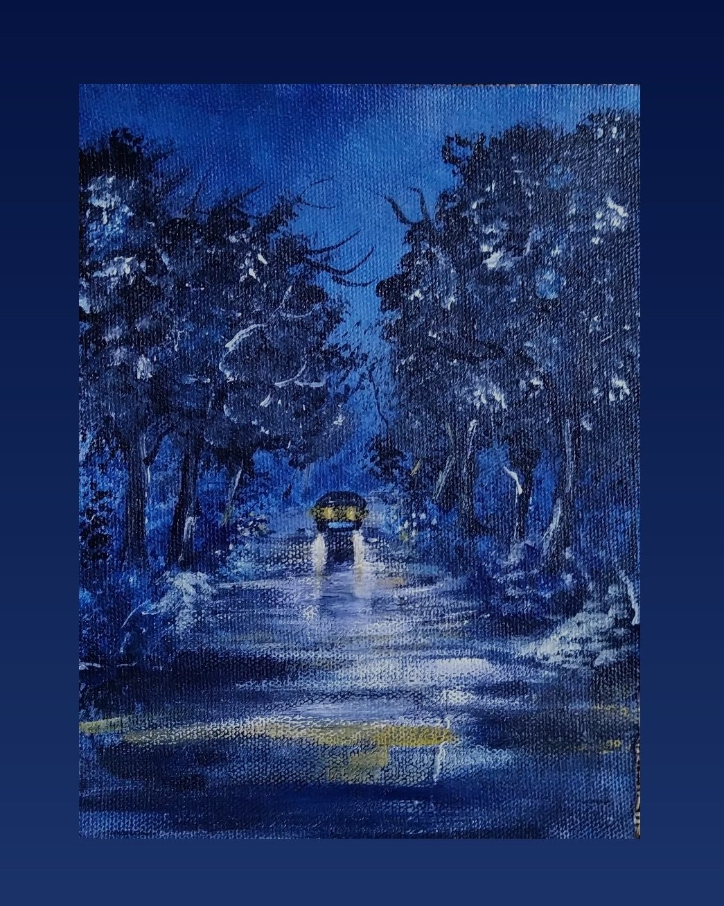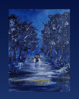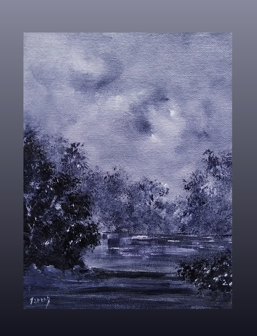 Acrylic on 6×8 inch canvas board. Really enjoyed painting this one. Colours I've used: Payne's grey {one of my favourite colours) & White.