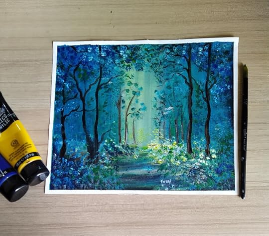 I painted this forest scene for my own colour based art challenge on Instagram. Just to experiment and keep myself motivated. The prompt is : Turquoise Forest. Four more prompts to go. Join if you find it interesting.
