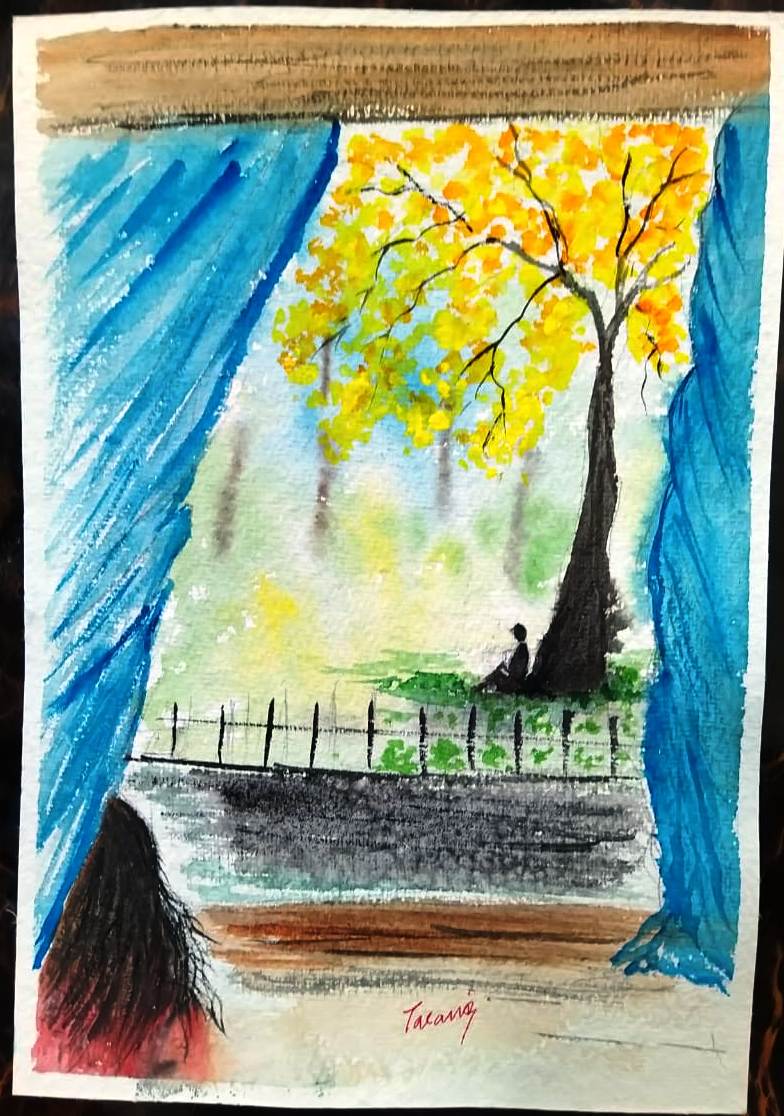 I, suddenly, want to be an illustrator. Even though my sketching is terrible. But I decided to add figures to my paintings. I painted this today. And it seems like a proper illustration, no? What do you think? It is based on a short story that I wrote yesterday. Please share your feedback.