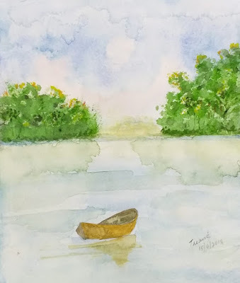 I painted this landscape two days back. One of my blogger friends, Ramya , had posted a picture on Instagram an I felt like painting. So asked her and she encouraged me. I painted in the first attempt, and I was somehow pleased.