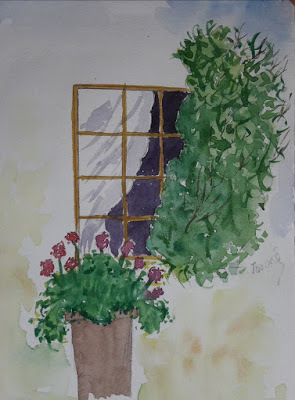 I find paintings/pictures of doors/windows intriguing. So wanted to paint. Didn't turn out well in the first attempt; the second attempt seems okay. I can't draw a straight line. I'm practising.