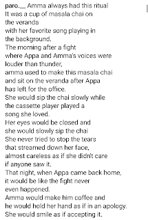 This is my Hindi translation of a beautiful write up Maria, written by Parvathy. You can read the original post HERE. She writes beautifully. Here's another translation that I did before. 'माँ, मैं और मसाला चाय'
