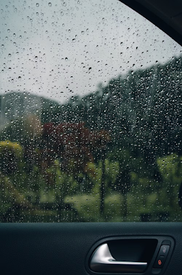 As I am fixing a quick breakfast, my eyes land outside the window. A white car stands, taking a shower in the rain.