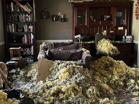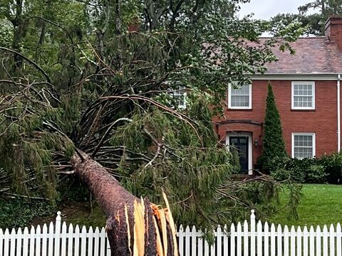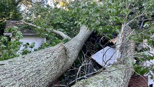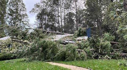 What I didn’t take into account was the biblical once-in-a-thousand-year rainfall that Asheville had just had 36 hours before Helene came through. The water was already so saturated, and the rivers so crested, that Helene became a natural disaster tipping point. After the storm was over, I took pictures of home after home whose roofs had been toppled on by a large tree. Every single picture you see here was taken by me after the storm, except the 4-second video which was taken by my son, Ian.