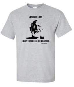Or, you can click on “Swag” and get your own Stanley Hauerwas “Jesus is Lord and Everything Else is Bullshit” t-shirt.