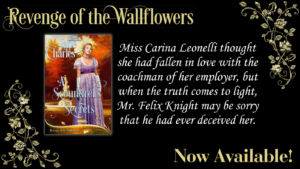 Miss Carina Leonelli had once been the pampered daughter of an Italian barone. All that came to an end when her father fell into bankruptcy, lost everything, and then suffered a violent death. With no home to return to, she became the companion of her dearest friend and found her place among the wallflowers.