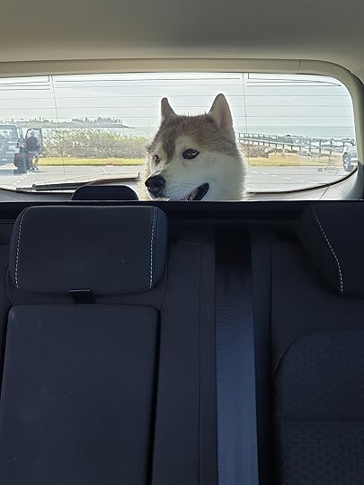 In his happy place, driving and beach play with his humans. What more could a dog want?