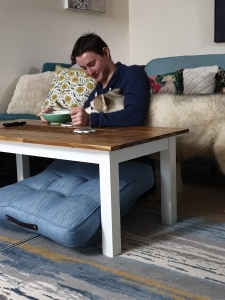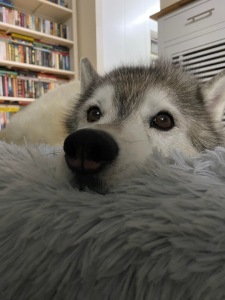 Once again, it’s a dog life, as in, he’s up to nothing but relaxing 24/7 and having every need attended to. But when you’re this adorable, it’s to be expected, I suppose. At least he gives warm hugs!