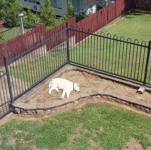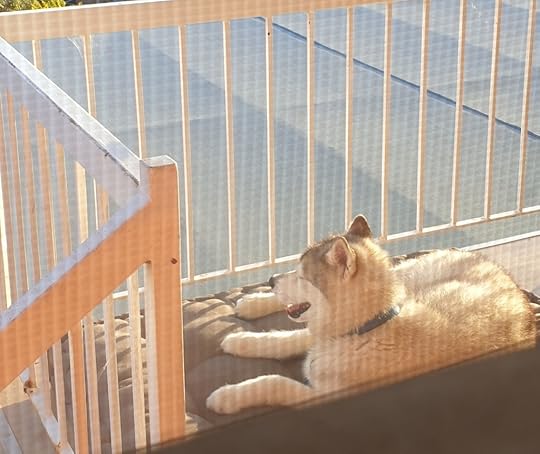 I had to take this photo through the fly screen because if I came out onto the deck, he wouldn’t have stayed this way. But this is Zeus, everyday, from 5pm til 7pm, in his happy place wearing his happy face. It’s certainly a dog’s life!
