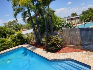 I wanted to share some garden progress with you this week. First, I did some enhancements on the garden area around the pool. Amazing what a difference a few bags of mulch can do.