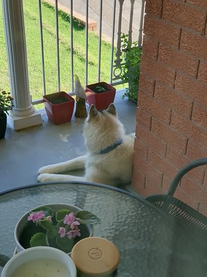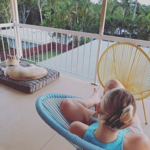 Zeus has been enjoying some company for his afternoon chill. He always sits on the back deck in the afternoon hours, catching the breeze and surveying his kingdom. I love this photo of my daughter with Zeus: together but alone. He’s happy to have her company, just as long as she doesn’t interrupt his routine!