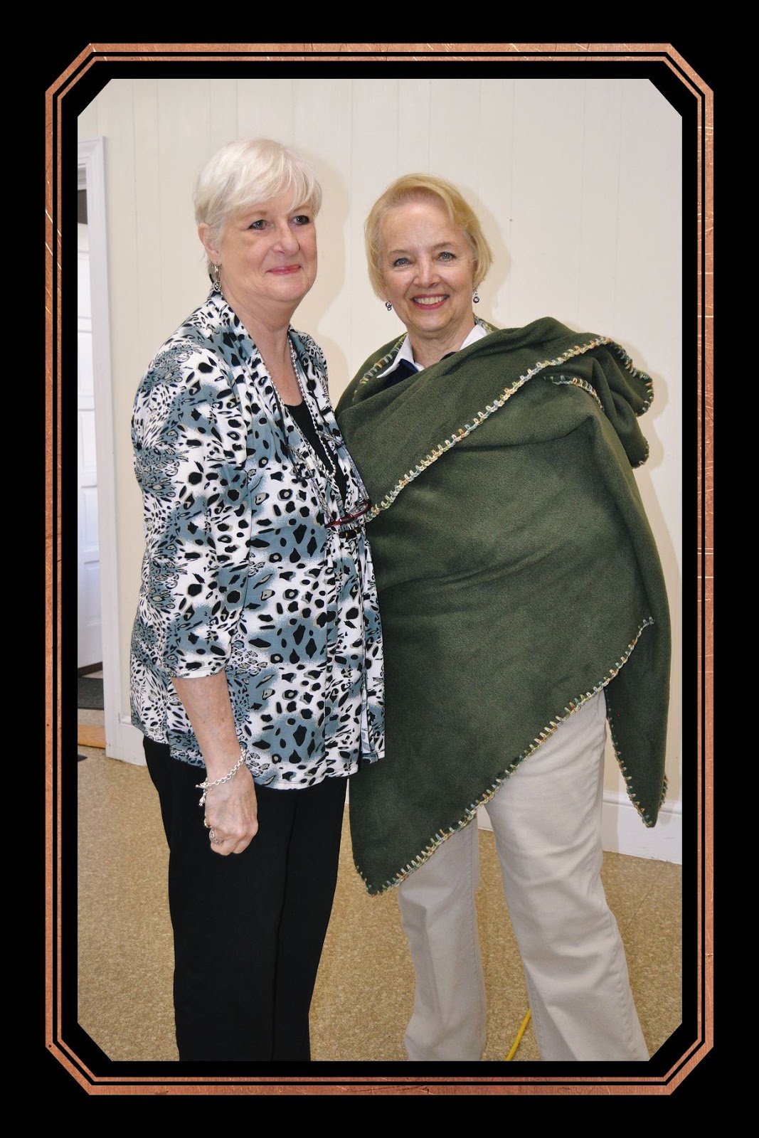 And last but not least, I can't forget to mention the wonderful cape made for me by the daughter of one of the gentlemen from Meadows of Dan, Virginia, who came forward to show me the spot where the B-17 bomber, The Spirit of South High, crashed. He was an 11-year old boy at the time, heard the crash and went running to the site. Unfortunately, he passed away a few months ago and wasn't able to witness the dedication of the marker. Linda Fain surprised me with this beautiful fleece cape. All of these were SURPRISE GIFTS FROM THE HEARTS of my readers. Each and every one was totally unexpected.