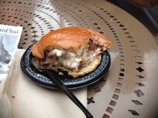 a warm brioche filled with white chocolate coconut ice dream...I mean cream.