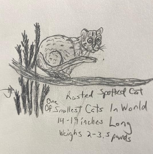 This little cat, and I mean little, is interesting to me. It’s 14-19 inches long and 2 to 3.5 pounds, the Rusty Spotted Cat.