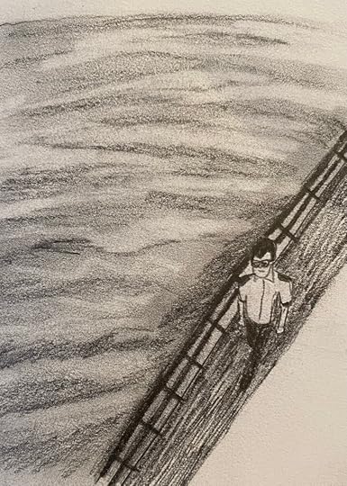 In this first Art Unboxed post of the year, and our first post of 2022, I would like to talk about angles. The simple pencil sketch above is just that, very simple, except for the angle. The angle of the Ship’s Purser walking along the deck of the ship is interesting because of the composition of the picture.