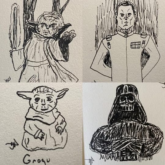 Some days you just feel like sketching Star Wars. Whether you’re Yoda fighting a pack of unexpected stormtroopers on a forest planet. A small Jedi just learning who he is. A Grand Admiral trying to pick up the pieces, or a cranky Vader, and when was he not that way. Some days you’re in a Star Wars Mood lol.