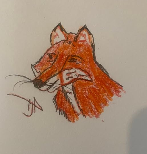 A quick sketch in pencil and watercolor pencil of a little fox.