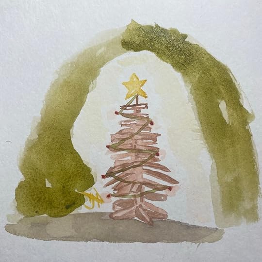 This watercolor was taken from a wooden tree. It’s a reminder that it’s not about the resources you have, but the true joy Christmas flows from our hearts. it also reminds me that the First Christmas, The Christ Child shined, not from a beautiful green background, but a simple manger.