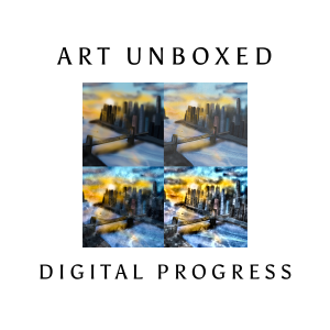 One technique, when you have a large project to complete, is to complete several small tasks in the beginning to gain momentum. The same is true in many art projects. Take for example, a city scene I recently completed, the same city scene is reflected in four stages.
