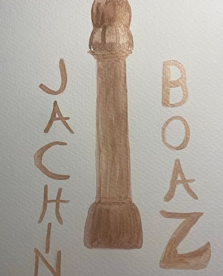 Today’s prompt for #WorldWatercolorMonth was bronze. As a Christian, student of history, and a Minister I wanted to illustrate it with the pillars of Solomon’s Temple. While there were two, I’ve painted one here, with the names of each on the sides.