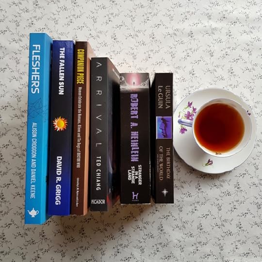 These include Fleshers by Alison Croggon and Daniel Keene, The Fallen Sun by David R. Grigg, Companion Piece edited by L.M. Myles and Liz Barr (technically non-fiction, but I figure the Doctor Who theme qualifies it), Stories of Your Life and Others by Ted Chiang, Stranger in a Strange Land by Robert Heinlein, and The Birthday of the World and Other Stories by Ursula Le Guin. Digital options include Mother of Invention edited by Rivqa Rafael and Tansy Rayner Roberts, Woman on the Edge of Time by Marge Piercy and Starfarers by Vonda McIntyre.