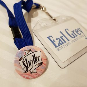 It wasn’t entirely necessary, since the con’s name tags had a space for including pronouns: a wonderfully inclusive touch.