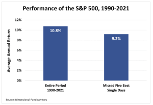 PERHAPS YOU’VE SEEN charts like the one below, which comes from Dimensional Fund Advisors. The message: Investors who try to time the market in search of better returns often end up damaging their results. To many investors, this seems intuitive, because trading isn’t easy.