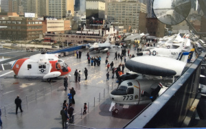 The children and Milly were treated like kings and queens aboard the Intrepid. First, we were rescued from the long line by the museum’s Curator and whisked onto the carrier. We had a personal two-hour tour. I remember all the old, beautiful brass used throughout the ship, the tight quarters, and displays of Navy memorabilia. The flight deck is home to many different aircraft. That part of the ship alone is well worth the visit: