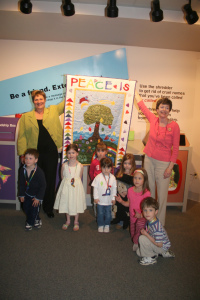 Children and families were eager to go and be part of presenting their work to a national museum. A good sized group made the trip to Philadelphia. The director had one request. “Please bring Gloria, too. After all, the quilt was her idea.” Yes, Gloria made the trip with us.