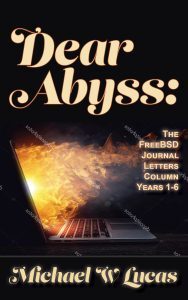 I’ve been focused on tech this year. Sold a couple short stories by invitation, but I can feel my literary brain starting to freeze up. Part of that is my three-week outage. I’m still planning to get the giant fiction epic done this year, and I’ll be starting promptly on a big non-Absolute book for No Starch Press. Amidst that, I have bits and pieces for a second edition of Networking for Systems Administrators. I’ll be doing Kickstarters for Run Your Own Mail Server, a new collection of the FreeBSD Journal Letters column (Dear Abyss), and late this year a weird off-brand book I’ll discuss later.