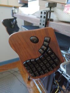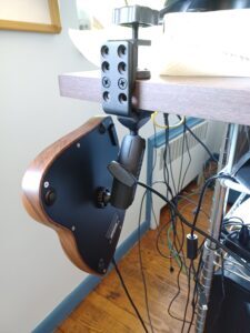 My hands don’t quite hang at my sides. They’re slightly forward. But it’s close to what I want. Writing this post, I realize that what I need are a couple of adapters to swing them a little further out from the desk and let me adjust the angle slightly. I ran off to order them and will post updated pics next month.
