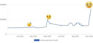 Almost hourly Musk demonstrates that he doesn’t understand people, doesn’t understand how Twitter is used, and picking stupid fights. I’m told that last Friday, the biggest Mastodon server got 70,000 new users. If you add in all the hundreds of other servers, we’re looking at hundreds of thousands of new accounts. Many servers doubled or tripled in usage.